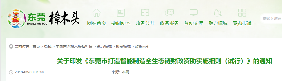 《東莞市打造智能制造全生態(tài)鏈財政資助實施細則(試行)》正式印發(fā)。對購買先進設備自動化改造的企業(yè),資助標準提高至設備投入額的25%到50%以上,單個項目最高資助500萬元。